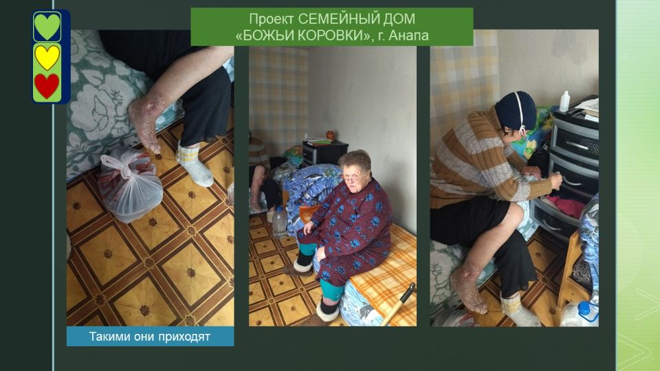 Когда Татьяну Ивановну нашли на улице, она весила 38 кг. Ее жизнь разрушил алкоголь. Передали ее в ""Зеленый светофор"" из больницы со словами:""Ей нужен уход и внимание"". На восстановление Татьяны Ивановны ушло около 3-х лет.