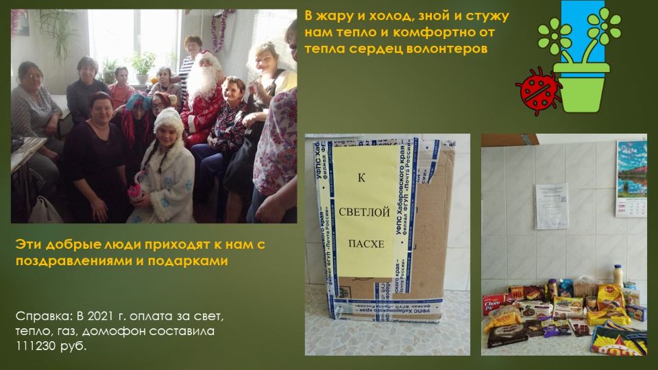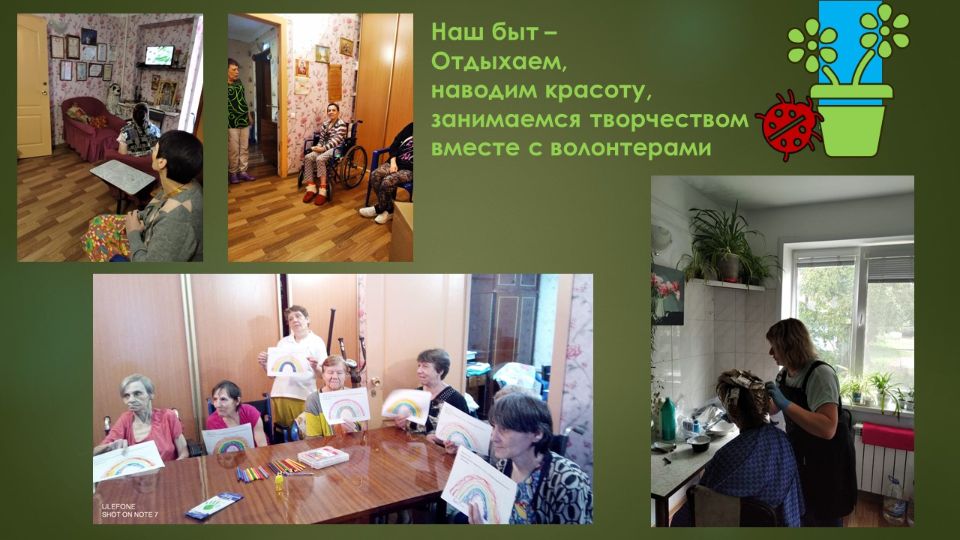 Мы помогаем женщинам от 50 лет и старше, попавшим в трудную жизненную ситуацию или в ситуацию бездомности, создаем комфортную среду для проживания, развития навыков самообслуживания и общения.